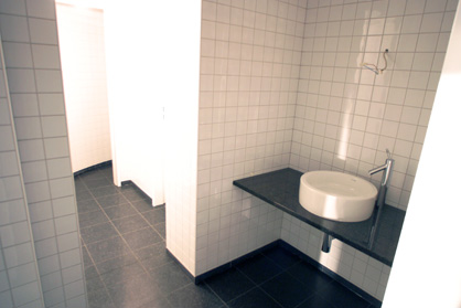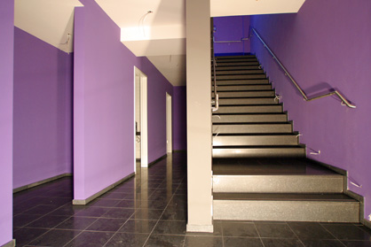 Keller unterhalb der Hofdurchfahrt nach der Restaurierung. Neue Treppe vom Pavillion zur Tanzschule und Zugang zu den sanitären Anlagen und Versorgungsräumen .