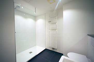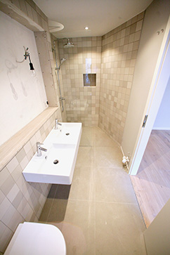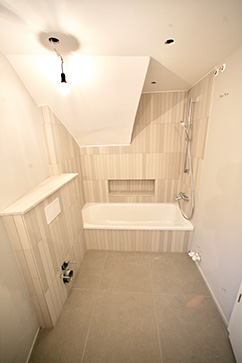 2.OG, Kinderbad unter der verkleideten Stahltreppe zum DG