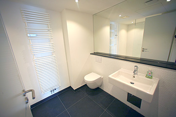 1.OG, Bad. Im Spiegel sieht man die Duschabtrennung